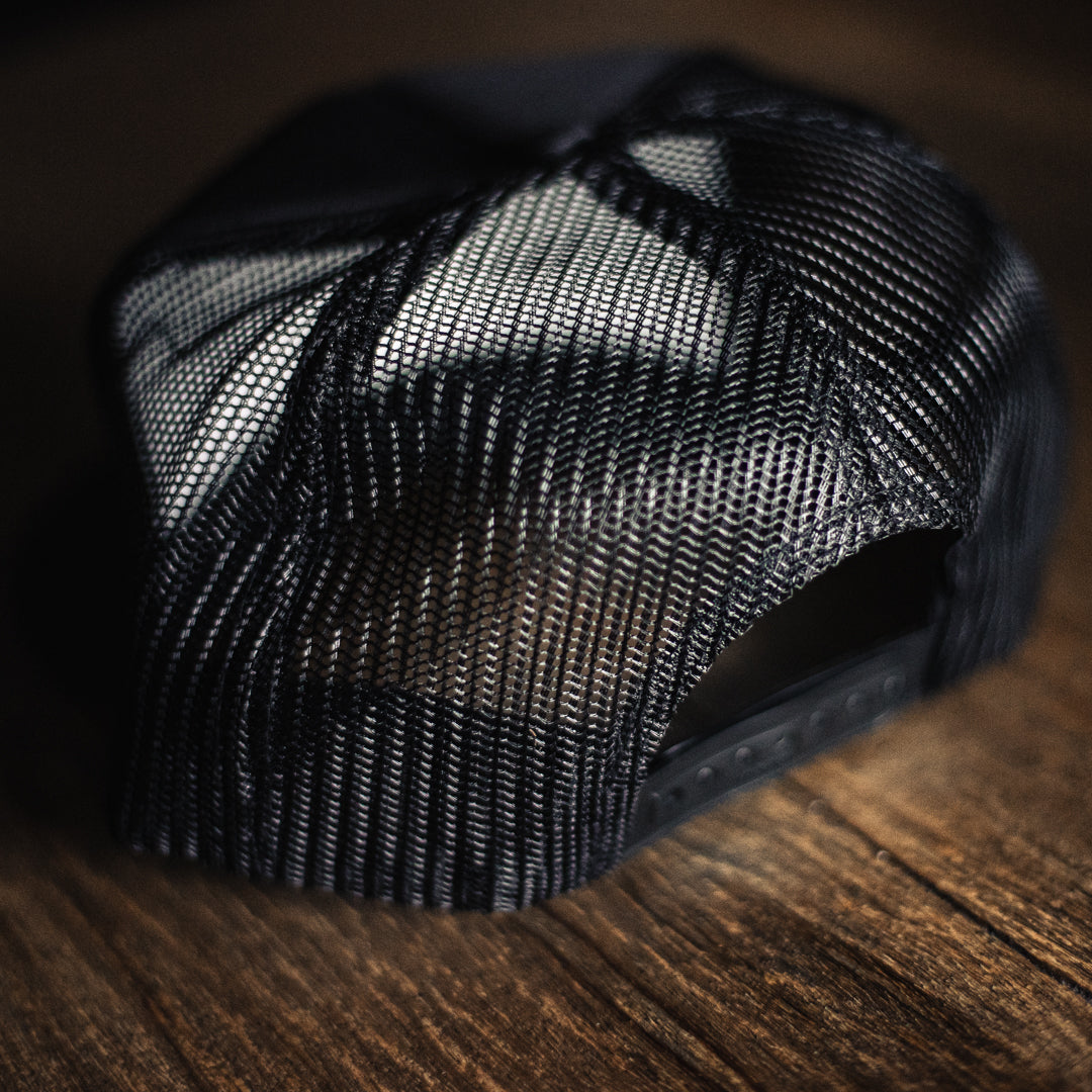 Black snapback hat with a blacked out Frayle logo. One size fits most.