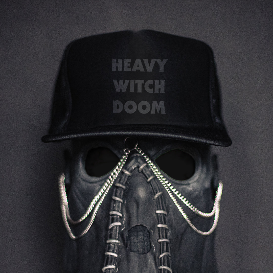 Black snapback hat with a blacked out Heavy Witch Doom graphic. One size fits most.