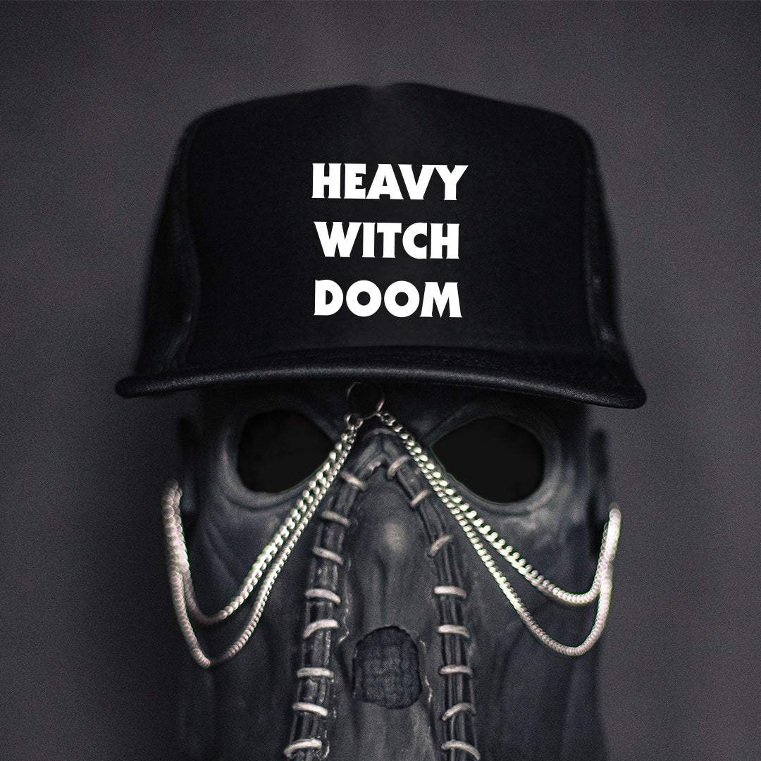 Black snapback hat with a white Heavy Witch Doom graphic. One size fits most.